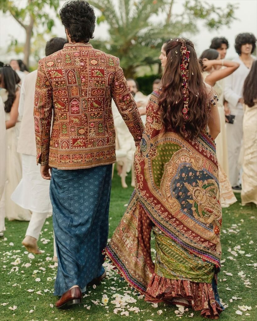 Unlike the structured elegance of the wedding ceremony, the sangeet is about music, dance, and high-energy celebration — and his outfit would reflect exactly that vibe.