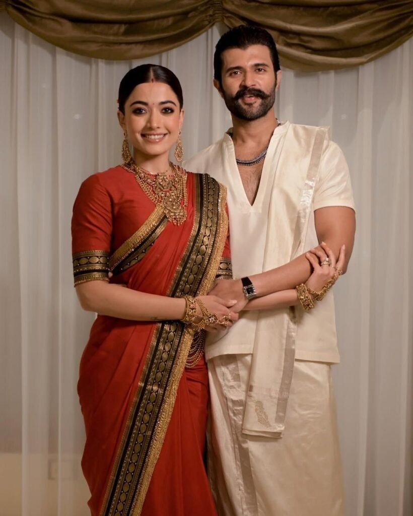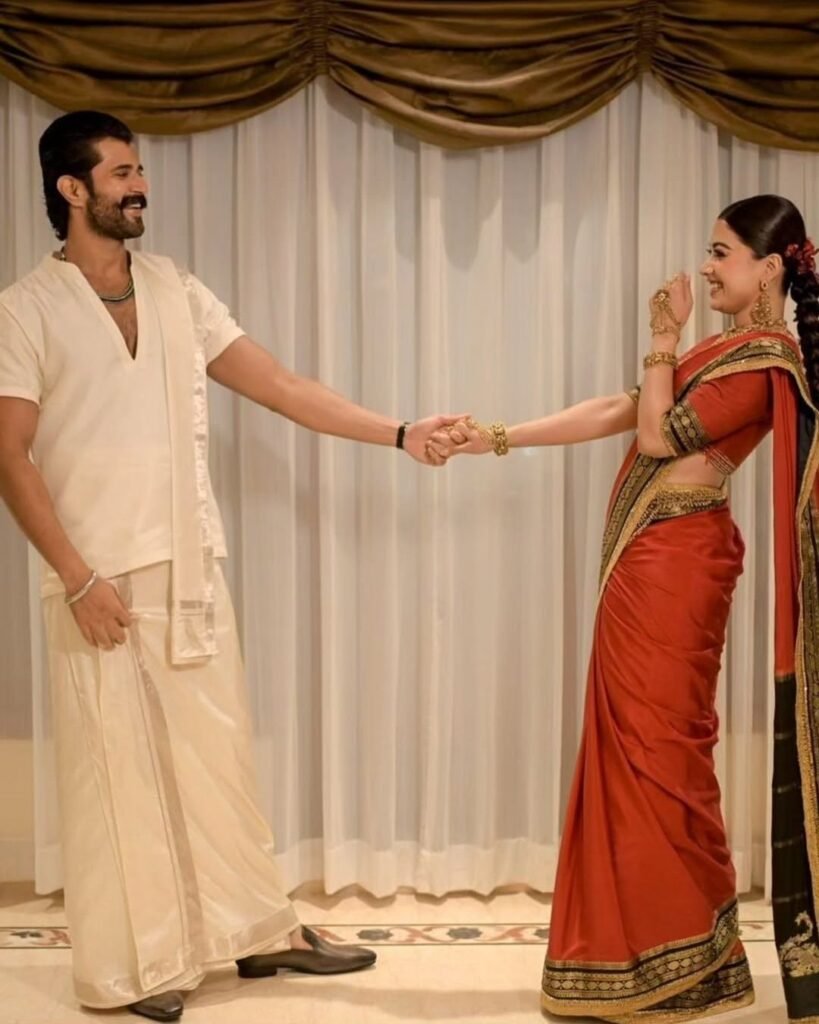 Vijay is known for embracing relaxed fits, so his haldi outfit would likely prioritize comfort over structure. He might even roll up sleeves or go for an open neckline to keep the vibe casual.